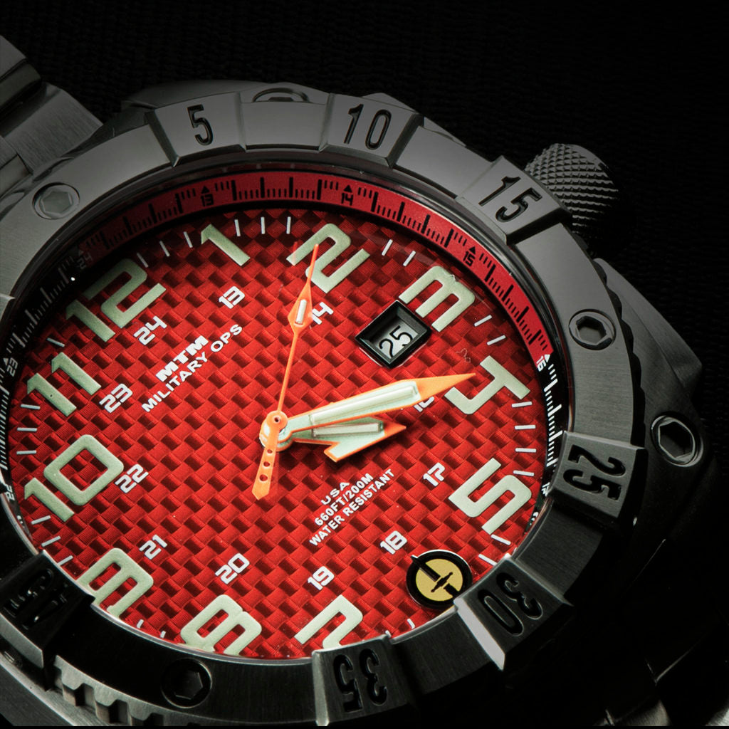 Forged for battle and refined for everyday strength, the MTM Warrior watch is the embodiment of tactical endurance and elite precision. Built for those who live with discipline, purpose, and grit, This next-generation timepiece is engineered to meet the demands of combat environments while delivering bold, modern styling. Crafted from high-grade 316L stainless steel or lightweight titanium, the Warrior is both rugged and refined. Inside, a Swiss quartz movement powers precise timekeeping.