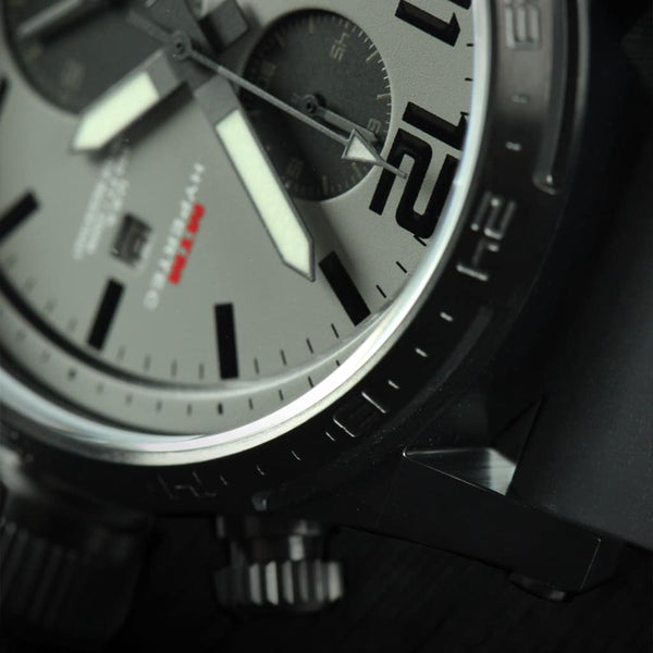 The stylish Black Hypertec Chrono 2A watch sports a grey dial and one easy-to-read seconds sub-dial. Like all MTM watches, the Hypertec Chrono is intricately designed and features strong and durable pieces, such as the stainless steel case, locking, double O-ring sealed crown, and scratch-resistant glass. These materials allow the watch to work deep underwater, up to 660 feet/200 meters, without missing a beat. At night, the watch’s super luminous hands glow for easy readability. With three detailed bezel options, eleven dials, and several bands to choose from, it will be no problem customizing your very own Hypertec Chrono watch.