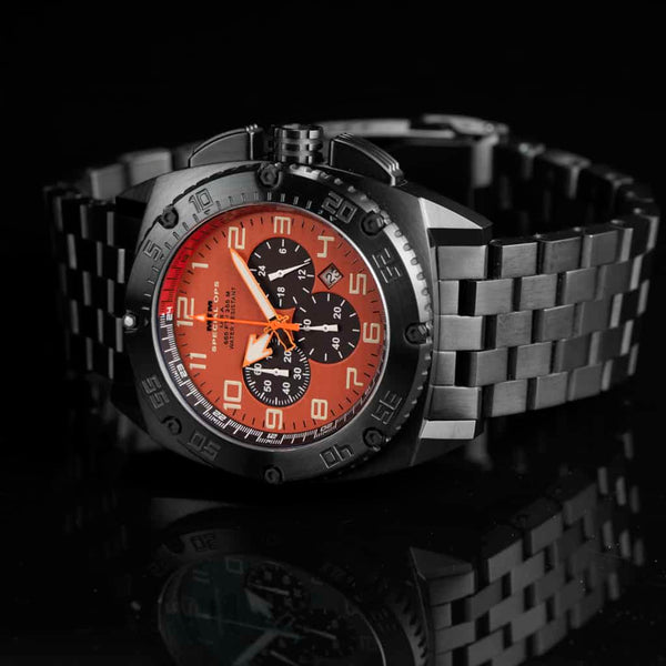 Crafted from solid 316L stainless steel or ultra-lightweight titanium, the Patriot is built to endure. Its rugged case houses a precision quartz movement with full chronograph functionality, providing split-second accuracy for critical timing. A scratch-resistant sapphire crystal ensures lasting clarity, while water resistance up to 200 meters makes it capable in any environment—land, sea, or air. The Patriot’s bold dial features luminous hands for easy readability, a 24-hour military sub dial, and a date display—all set within a clean, no-nonsense layout that reflects the watch’s tactical roots. Whether you're in the field or in the office, the Patriot balances functionality and style without compromise. The MTM Patriot is more than a timepiece—it’s a symbol of courage and commitment. Worn by those who defend, lead, and inspire, it stands as a constant reminder of honor, service, and the unyielding spirit of the Patriot.