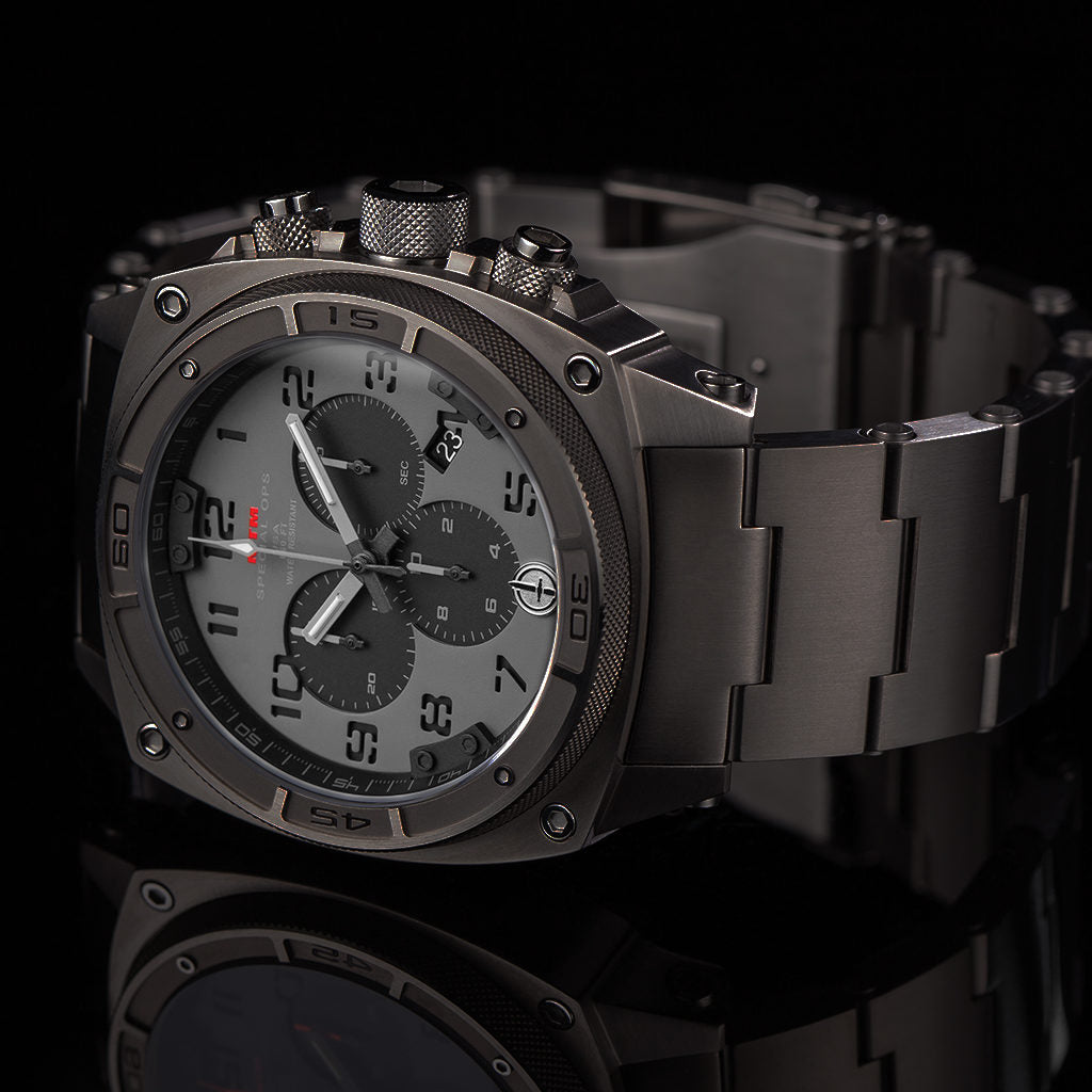 The MTM Predator watch is a bold symbol of strength, resilience, and tactical precision—crafted for those who embody the spirit of service and leadership. Designed for modern warriors, first responders, and everyday patriots, this next-generation timepiece blends military-grade durability with timeless design and mission-ready functionality. Built from lightweight titanium.