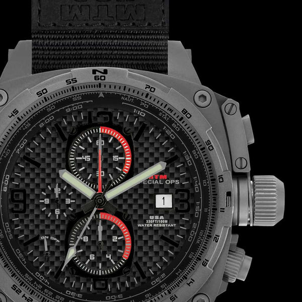 Engineered from solid titanium and equipped with a scratch-resistant sapphire crystal, MTM’s Cobra 44 is made to take a beating while maintaining a bold, refined appearance. Its aggressive, modern design features a clean yet commanding dial layout powered by a reliable quartz chronograph movement. Whether you're on a covert operation, navigating a rugged trail, or leading in the urban jungle, the Cobra keeps you on time and in control. With full chronograph functionality, and a date window, this watch is ready for tactical timing and everyday wear. The luminous hands ensure legibility in low-light environments, while its 200-meter water resistance means it's just as capable in the water as it is on dry land. Sleek, powerful, and ready for anything—the Cobra 44 is more than a watch. It's a mission tool.