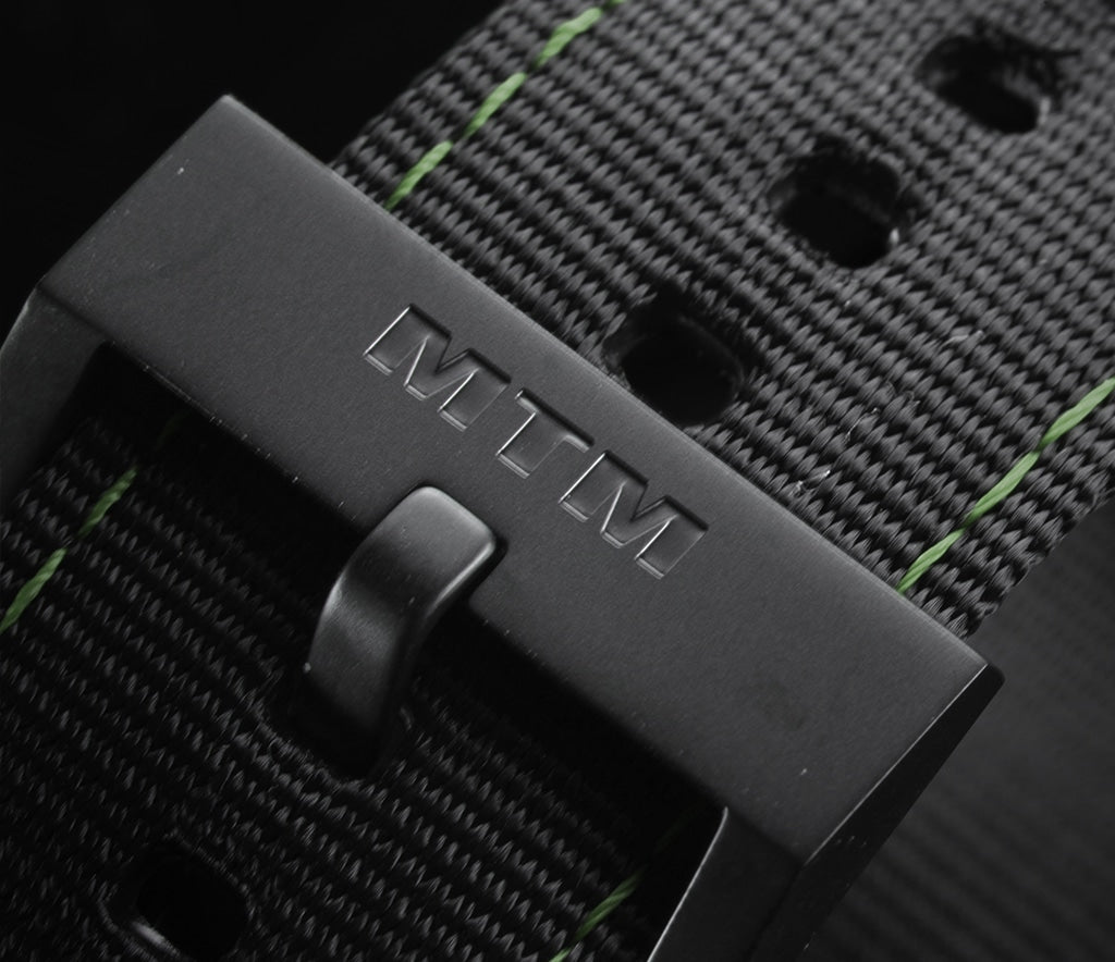 The MTM Special Ops NATO watch band is a tactical accessory designed for durability and versatility. Crafted from high-quality nylon, it features a solid 316L stainless steel buckle for added strength. With a 24mm width, the strap is compatible with most MTM watch models