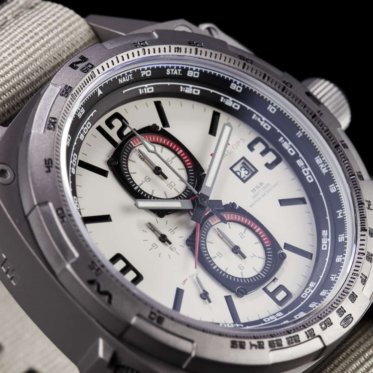The MTM Special Ops Silver Cobra 47 watch promotes a sophisticated and stylish look and feel, meant for everyday use. Its superior strength and durability is second to none, boasting a high-grade titanium case with a locking screw-down crown and pushers. As an aviator/pilot watch, this tactical military watch is perfect for traveling, whether in the air, on land or by sea. The Silver Cobra 47 boasts a sleek shine that will compliment your lifestyle and watch collection. Customize this watch with alternative options or purchase as displayed.
