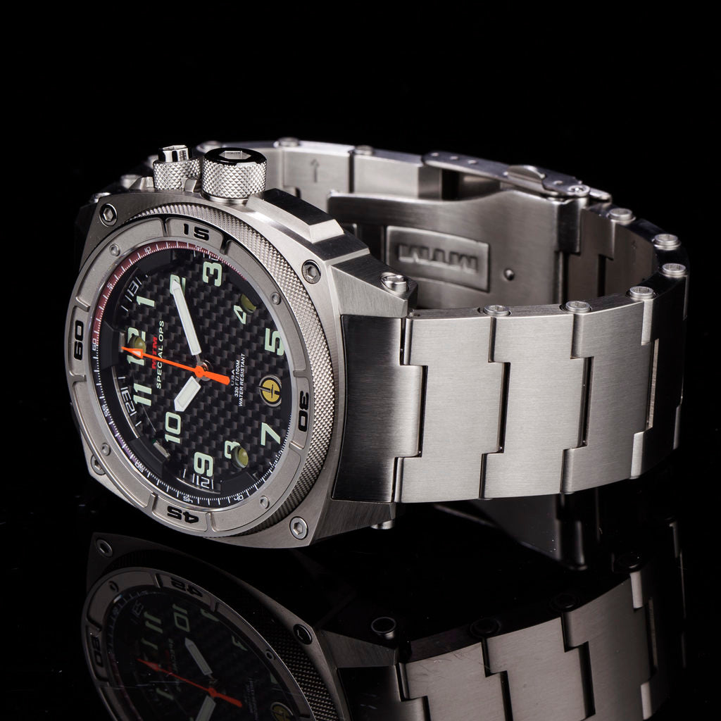watch built for high-performance missions and extreme durability. Engineered with military and law enforcement professionals in mind, this cutting-edge timepiece delivers mission-readiness in a rugged, no-nonsense design. Constructed from ultra-durable 316L stainless steel or in its lightweight titanium version, the Falcon is battle-tested and field-proven. Its tough, tactical exterior houses a hybrid analog-digital movement, powered by a rechargeable lithium-ion battery.