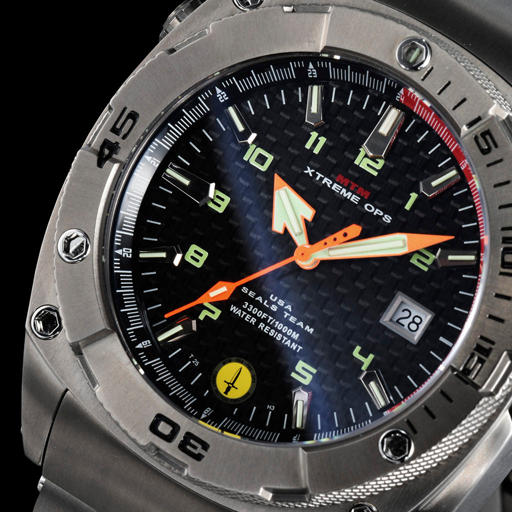 The MTM Special Ops Black Cobra 47 is a new limited edition watch, recently added to the Cobra collection. Each Cobra watch is individually numbered and assembled to order specifications. The Black Cobra 47 boasts a strong brass dial with Super Luminous (LumiNova) index and hands to ensure easy readability in low light. Supplemented with an extremely tough, Grade-2 titanium case and sapphire glass crystal, this watch is dynamically accustomed for use in differing settings. It is a perfect watch for a night out on the town, an important business meeting or just playing ball with friends. Tactically sophisticated is its middle name, so prepare to customize, wear and feel like a boss.